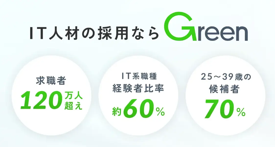 また、専門の人事担当者がスカウトに介入するので、応募者のスキルや希望する条件とマッチングしやすいのもgreenの特徴です。IT/WEB専門の採用媒体なので、ITエンジニアの登録が多いことも希望に近い人材と出会いやすいポイントです。