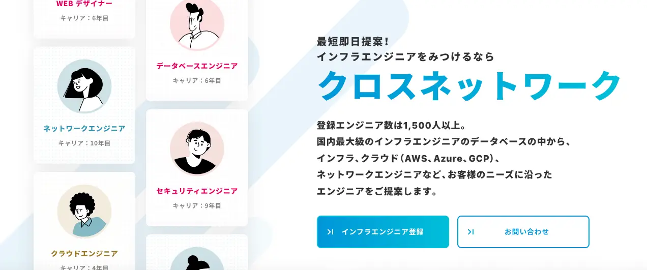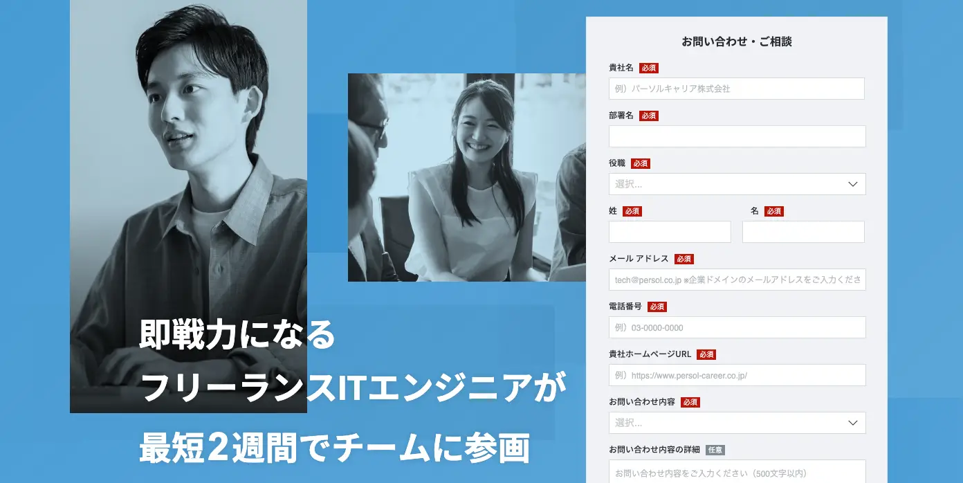 登録者の多くが現場経験豊富なプロフェッショナルで、スキルだけでなくコミュニケーション力や提案力にも優れています。短期間でスピーディに採用を進められるため、「すぐにでもプロジェクトを動かしたい」「社内にない専門スキルを補いたい」といったニーズにも柔軟に対応可能です。