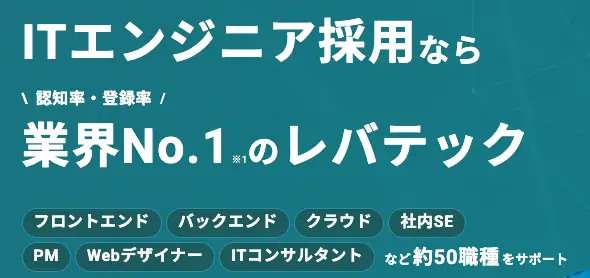 レバテックは、フリーランス専門エージェントの大手企業として、取引企業5,000以上、登録エンジニアやクリエイター数は20万人以上の規模となっています。