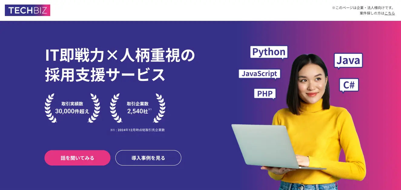テックビズフリーランスは、エンジニアの独立支援やキャリアサポートが強みです。