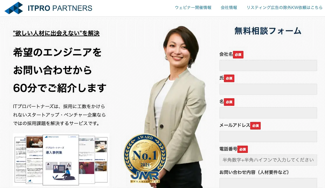 ITプロパートナーズは週2~3日からの副業・複業案件を豊富に扱うエージェントサービスです。柔軟な働き方を希望する人材に強く、トレンド技術を取り入れた案件も多いのが特徴です。短期・スポット案件にも対応できるため、短期でも利用しやすいサービスといえるでしょう。