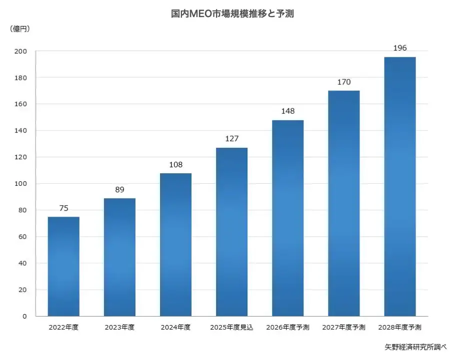 矢野経済研究所によると、国内のMEO市場は今後も拡大が続くと予測されています。(以下図参照)