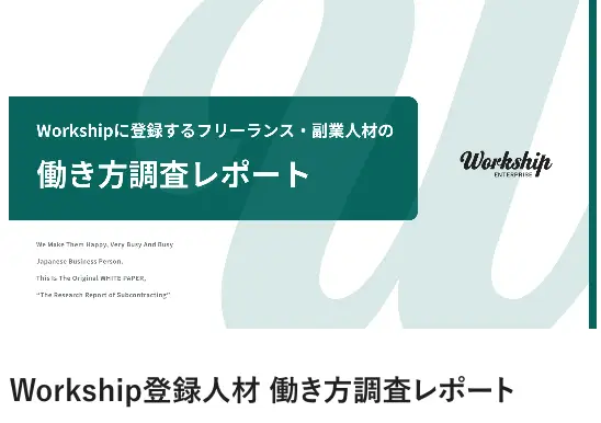 ▼以下では、Workship登録人材から収集した『フリーランスの働き方に関する調査レポート』を無料でダウンロードできます。フリーランスが希望する報酬額や休日などを網羅した資料ですので、ぜひ貴社の採用活動にお役立てください。