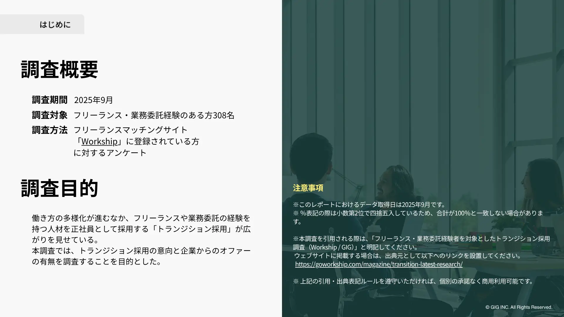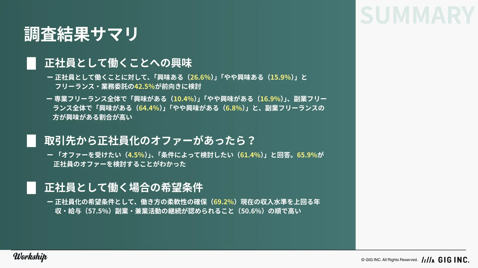 • 調査名:フリーランス・業務委託経験者を対象としたトランジション採用調査(Workship / GIG)